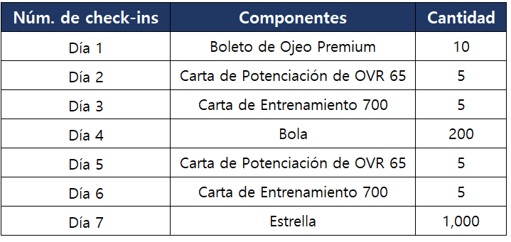 ※ Las recompensas de Check-in se pueden recoger de la pantalla principal > Check-in > Evento de Check-in.