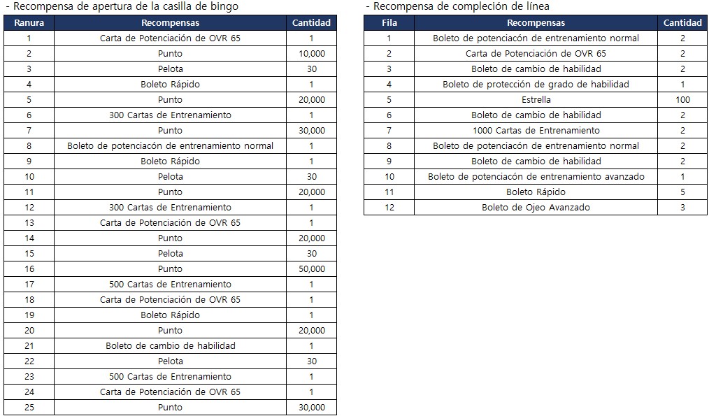 ※ El Paquete Prime de Intercambio solo se da una vez al completar el tablero de bingo por primera vez.