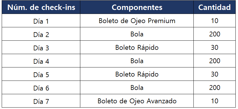 ※ Puedes recoger las recompensas de check-in desde la Pantalla Principal > Check-in > Evento de Check-in.