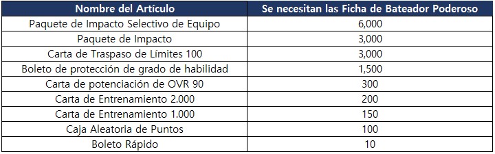 - Las Fichas de Bateador Poderoso no utilizadas desaparecerán después de que cierre la tienda de evento.