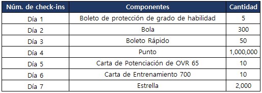 ※ Las recompensas de check-in se pueden recoger desde la pantalla principal > Check-in > Evento de Check-in.