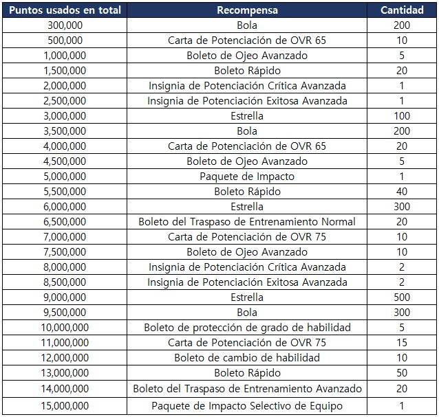 - Puedes obtener las recompensas de la lista de abajo según tu uso de puntos durante el periodo del evento.