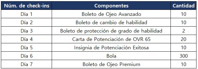 ※ Las recompensas de check-in se pueden recoger en Pantalla Principal > Check-in > Evento de Check-in.