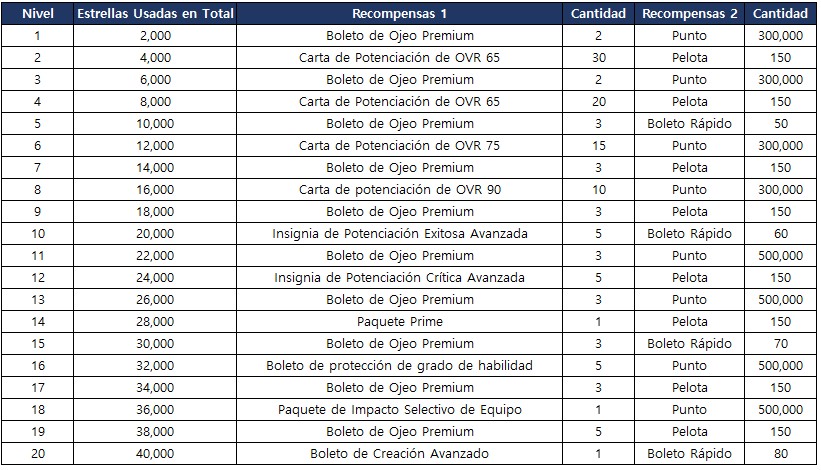 - Las siguientes recompensas se pueden obtener según la cantidad de "Estrellas" utilizadas durante el evento.