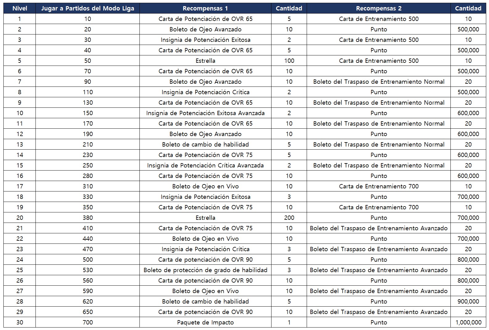 - Puedes obtener las siguientes recompensas según el número de partidos en modo liga jugados (independientemente de la dificultad) durante el evento.
