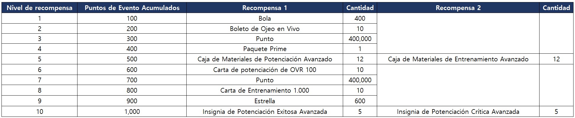 - Puedes obtener el jugador del equipo preferido al acumular 1.000 puntos del evento.