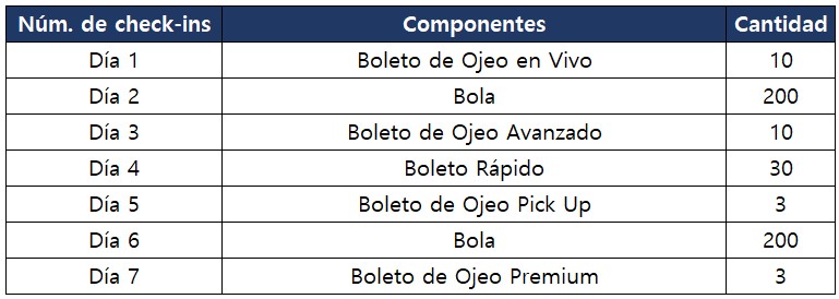 ※ Las recompensas de check-in se pueden recoger en Pantalla Principal > Check-in > Evento de Check-in.