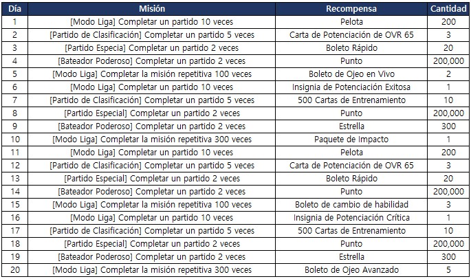 - Las misiones se desbloquearán todos los días, independientemente de tus fechas de inicio de sesión.