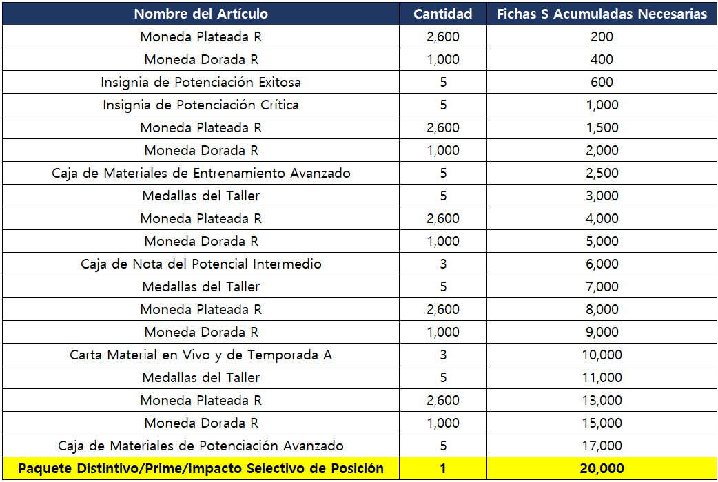 - Puedes obtener las recompensas de etapa según la cantidad total de Fichas S obtenidas jugando a los Partidos del Evento Showdown.