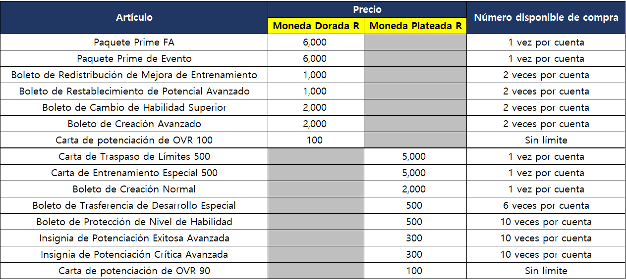 ※ Las Monedas Plateadas R y Monedas Doradas R se pueden obtener según el progreso del Evento Showdown y jugando a los Partidos de Evento.