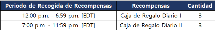 ※ Se entregarán a la vez las Cajas de Regalo Diario I y II el 23 de octubre a las 7 p.m. EDT.