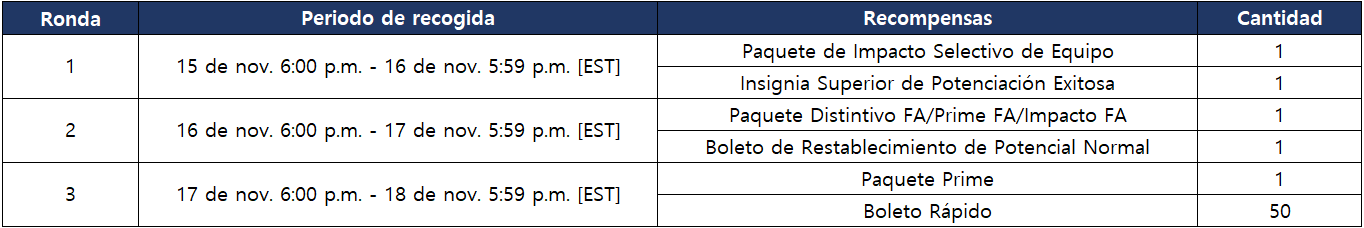 - Las recompensas se entregarán al Buzón con el primer inicio de sesión de cada ronda.