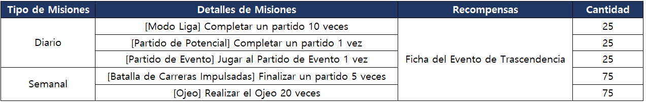 ▼ Misión del Evento de la Trascendencia de Jugador
