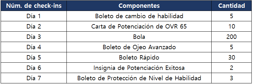 ※ Las recompensas de Check-in se pueden recoger en Pantalla Principal > Menú de Evento en la parte inferior > Check-in > Evento de Check-in.