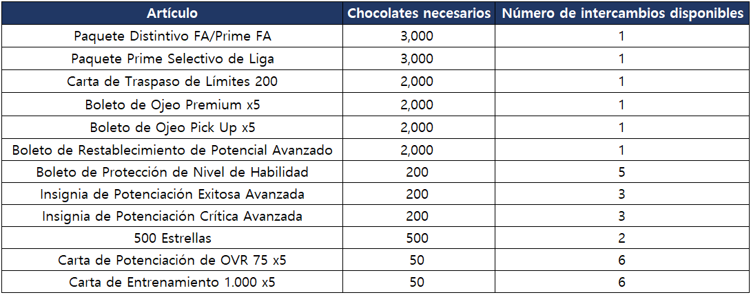 - Puedes intercambiar con los Chocolates de la GM Lizzy obtenidos a través del EVENTO 1 por varios artículos.