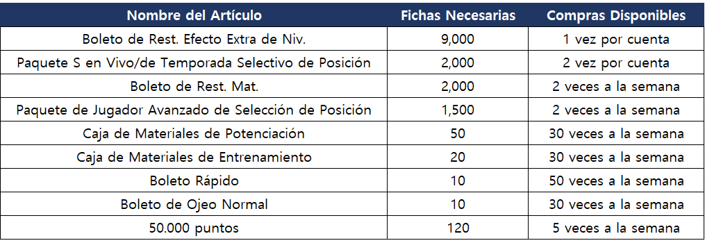 - Puedes comprar los artículos en la Tienda de Evento con las Fichas del Evento de Entrenamiento de Posición obtenidas en el Partido de Evento.
