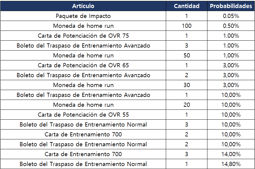 - Puedes obtener uno de los artículos de componentes con una cierta probabilidad.