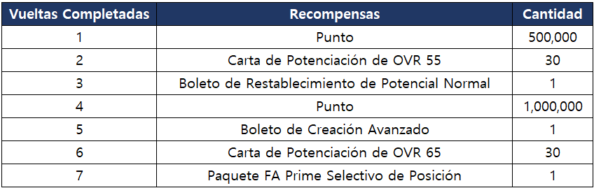 - También obtendrás recompensas según el número de vueltas completadas en la tabla.