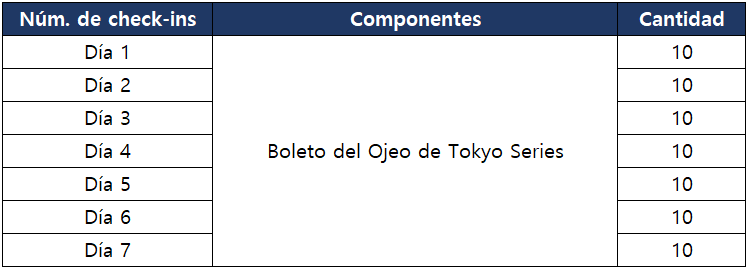- Obtén 10 Boletos del Ojeo de Tokyo Series a diario haciendo el check-in durante el periodo de evento. Puedes obtener hasta 70 boletos en total.