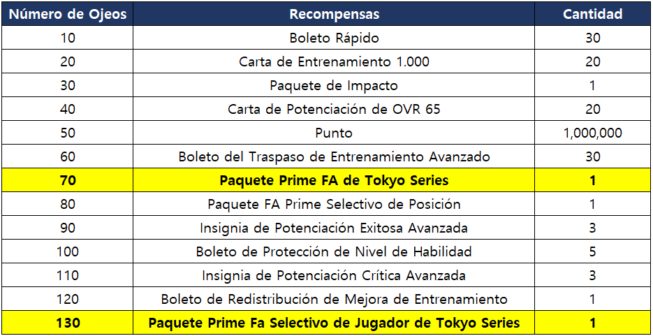 130 Ojeos → Paquete Prime FA Selectivo de Jugador de Tokyo Series.