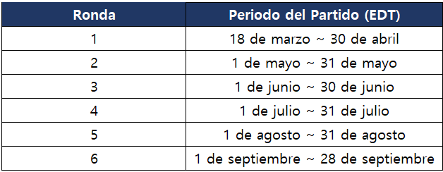 - La predicción de partidos de la temporada regular se divide en seis rondas.