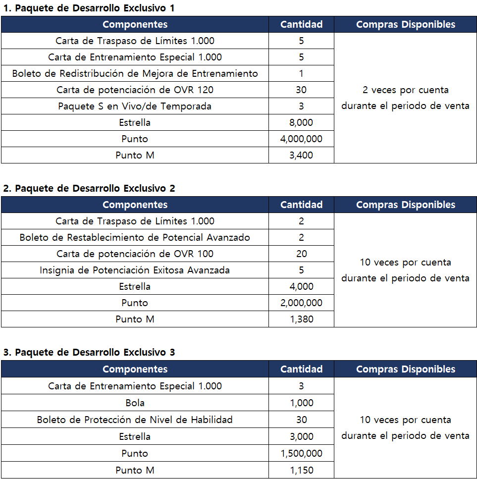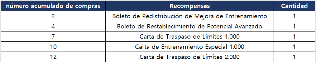 - Puedes obtener las siguientes recompensas según el número acumulado de compras del Paquete de Desarrollo Exclusivo.