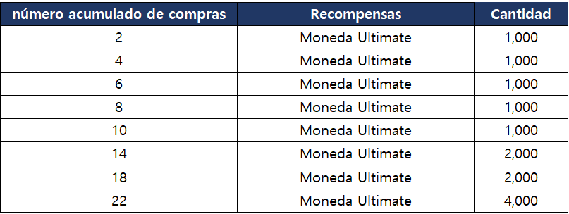 - Puedes obtener las siguientes recompensas según el número acumulado de compras del Paquete Premium Supremo.