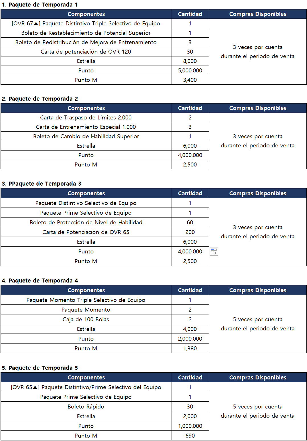 * El “Paquete Momento Triple Selectivo de Equipo” y el “Paquete Momento” obtenibles en el Paquete de Temporada 4 no incluyen jugadores con emblemas que se consiguen en la Tienda de Contenido o mediante eventos.