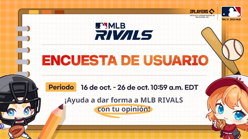 Para hacer que MLB RIVALS sea aún más divertido y fluido, estamos realizando una [Encuesta para Usuarios] para escucharte directamente.