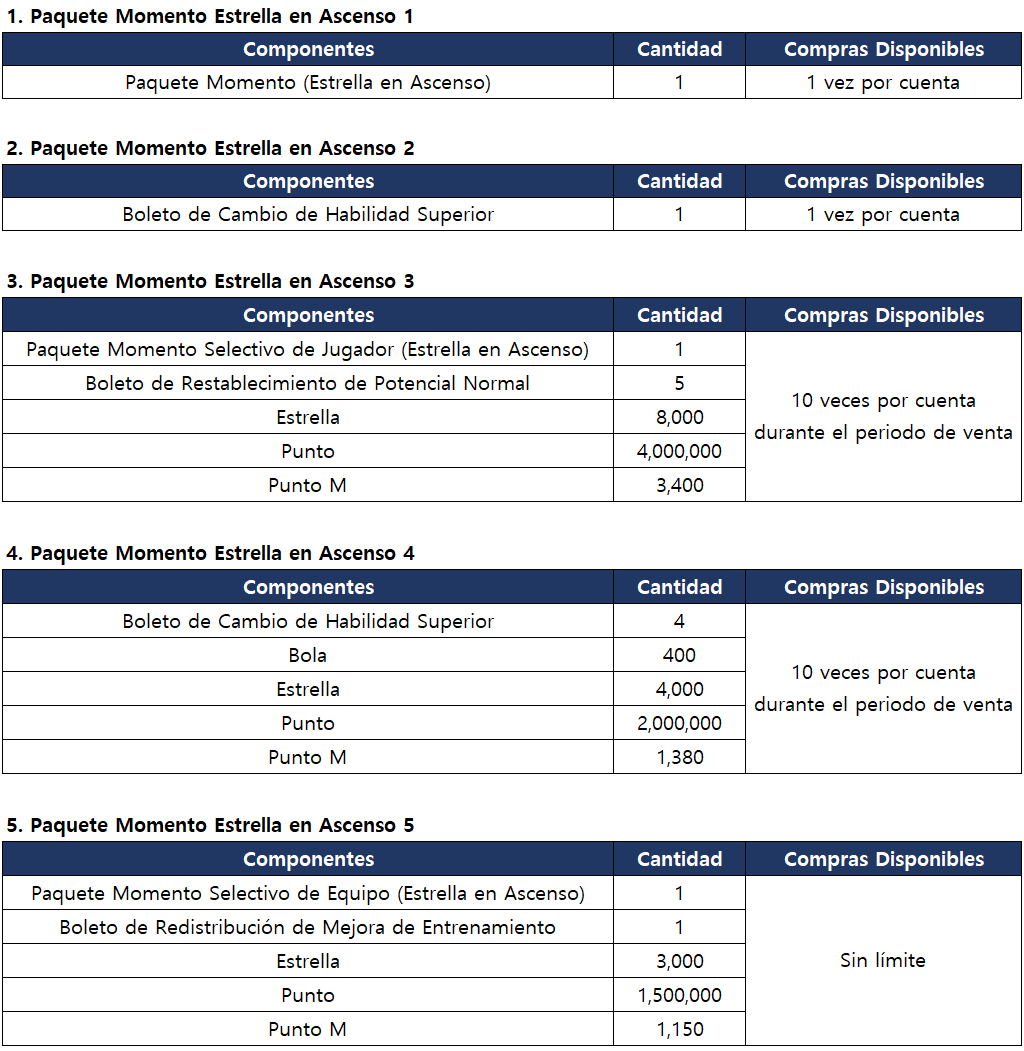 - Se puede comprar el Paquete Momento Estrella en Ascenso 1 y 2 con Estrellas.