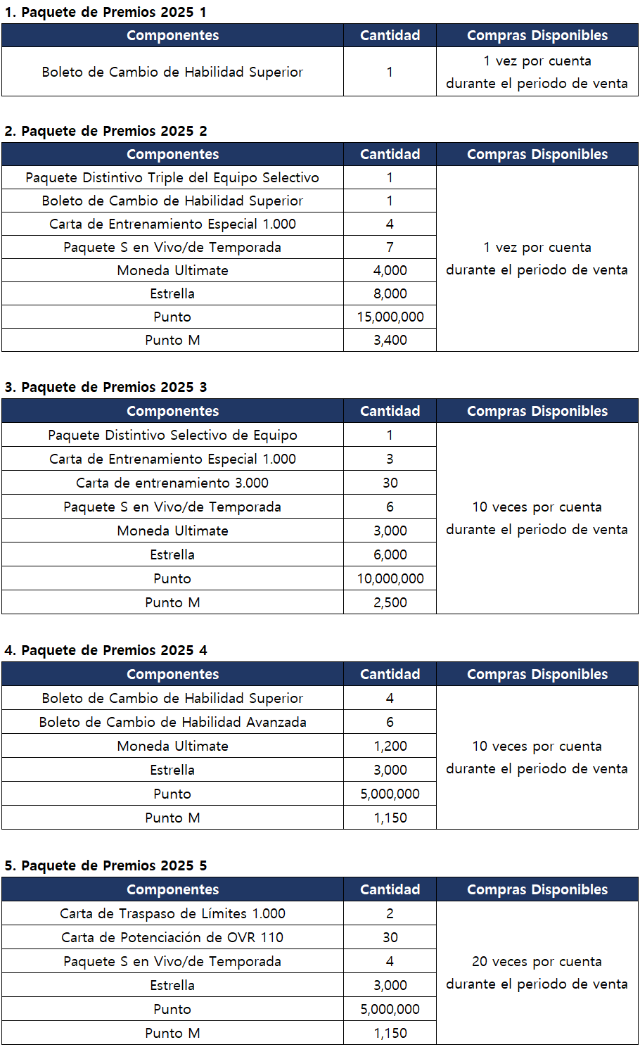 * Se puede comprar el Paquete de Premios 2025 1 gratis.