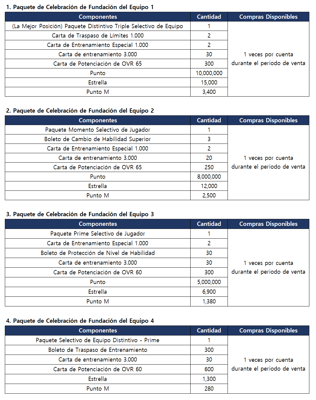 [Aviso] Aviso de Venta del Paquete de Celebración de Fundación del Equipo