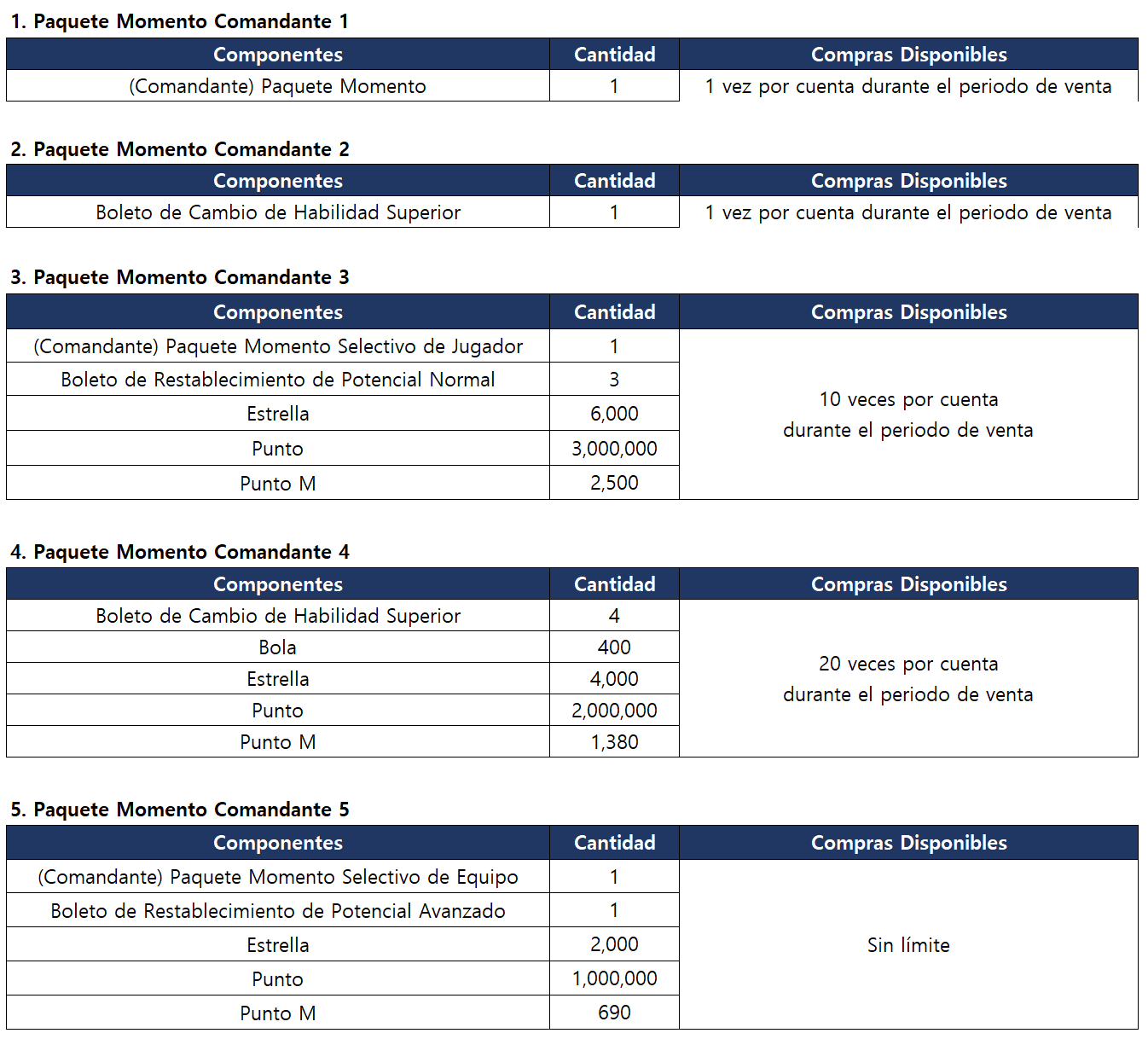 [Aviso] Aviso de Venta del Paquete Momento Comandante