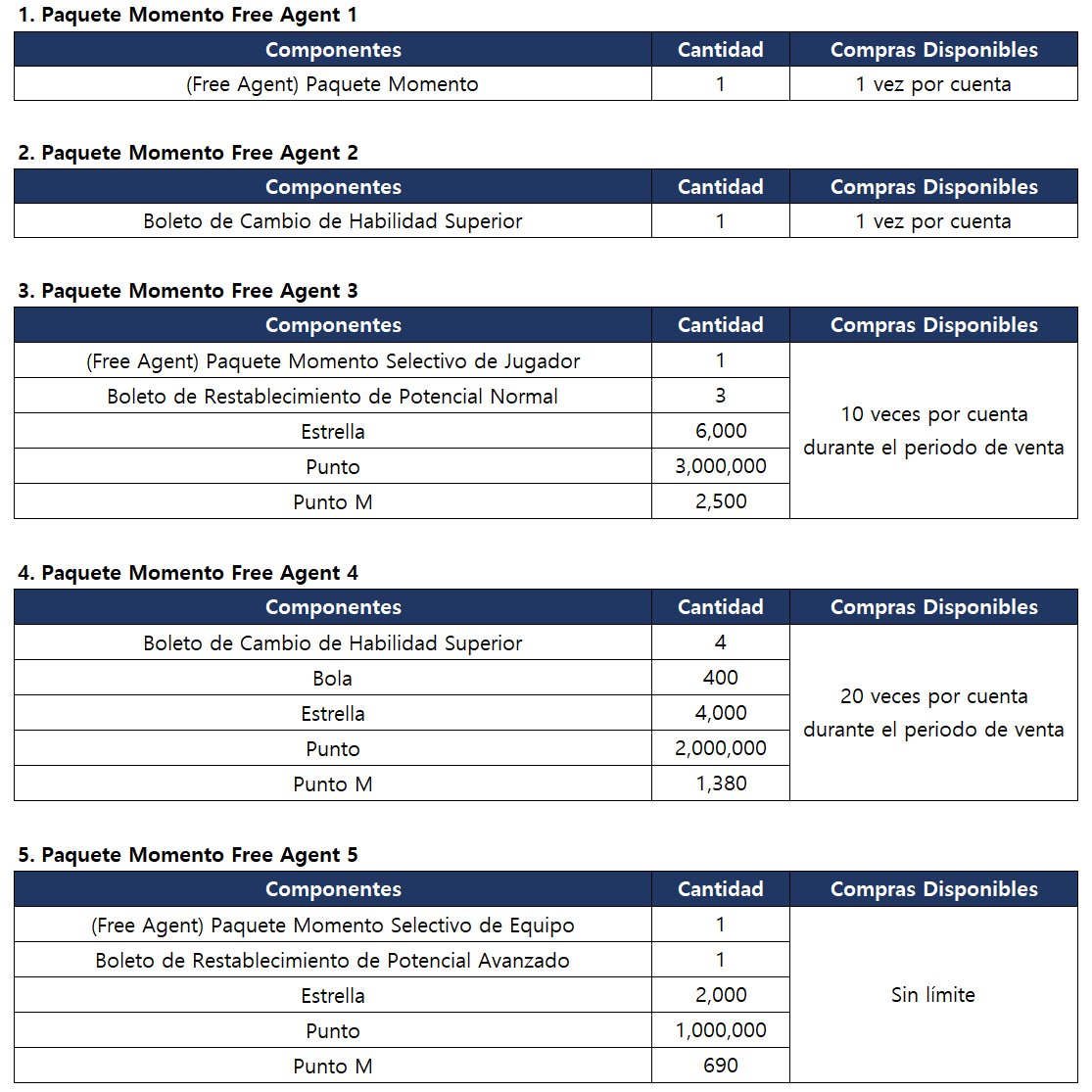 * En el Paquete Momento obtenido del Paquete Momento FREE AGENT solo se puede obtener la Carta (FREE AGENT).