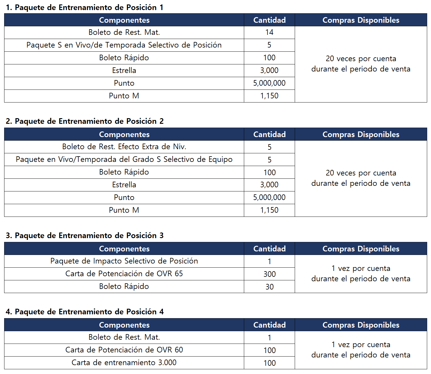 - El Paquete de Entrenamiento de Posición 4 se puede comprar de forma gratuita.