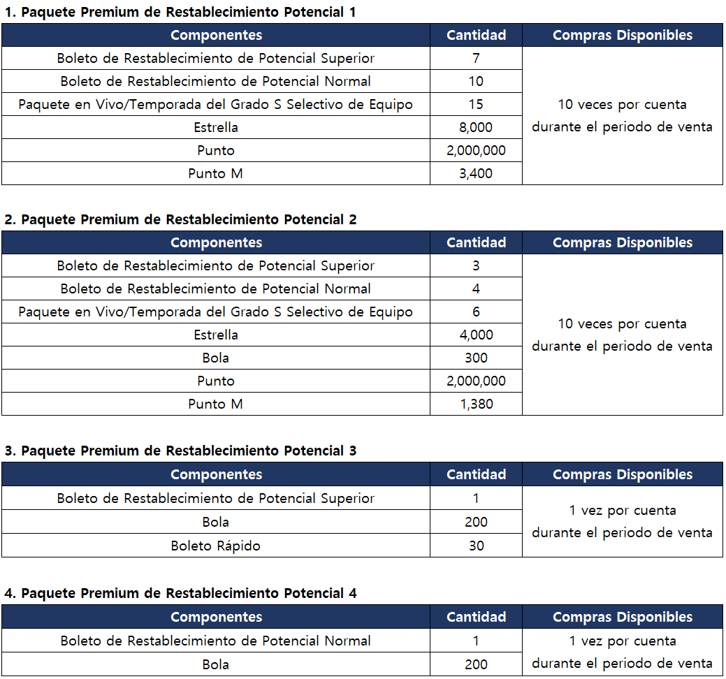 [Aviso] Aviso de Venta del Paquete Premium de Restablecimiento Potencial