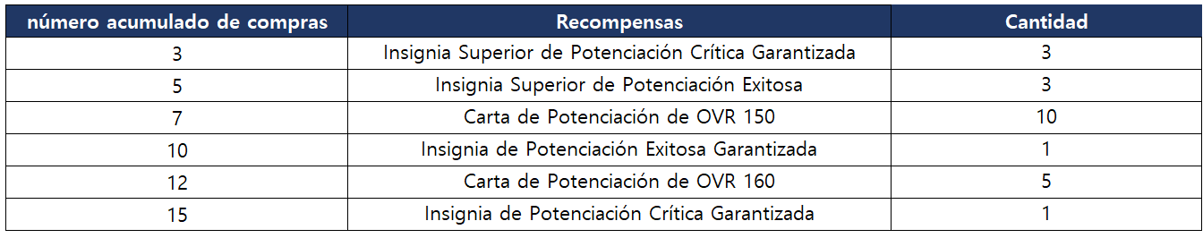 - Puedes obtener las siguientes recompensas según el número acumulado de compras