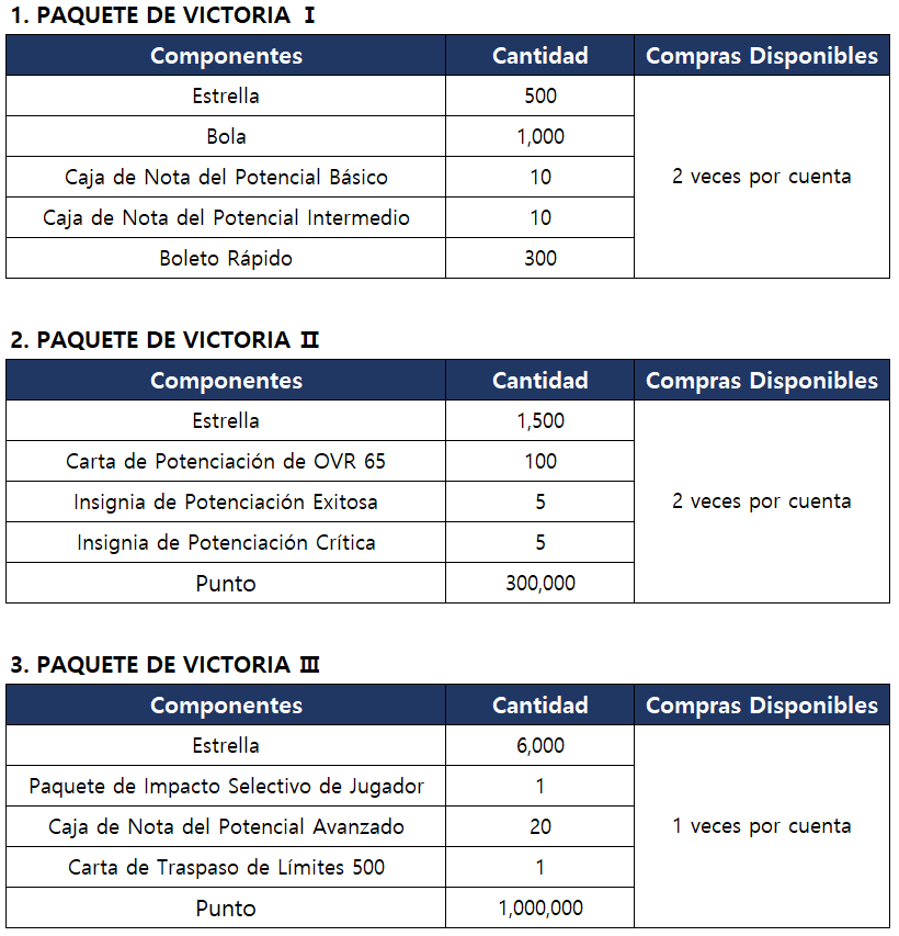 El [Paquete de Victoria] que ofrece varios artículos que lleva tu equipo a la victoria estará disponible en el juego.