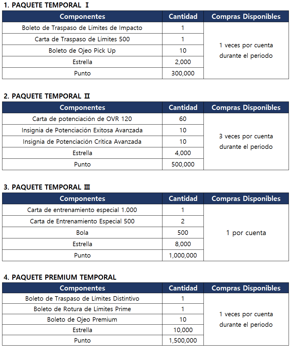 El [Paquete Estacional] que ofrece Boletos de Mejora de Límite Distintivo/Prime, Tarjeta de Entrenamiento Especial y otros artículos especiales de desarrollo estará disponible.