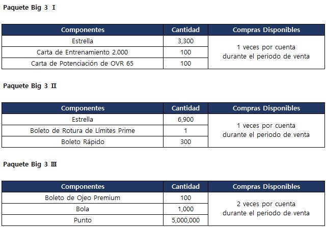 Nos gustaría informarte de la venta del [Paquete Big 3] que contiene los artículos esenciales para el ojeo y desarrollo de jugadores.