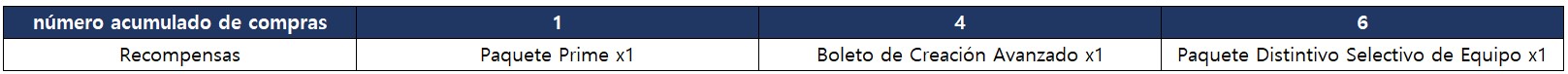 - Puedes obtener las siguientes recompensas según el número acumulado de compras del Paquete de Temporada.