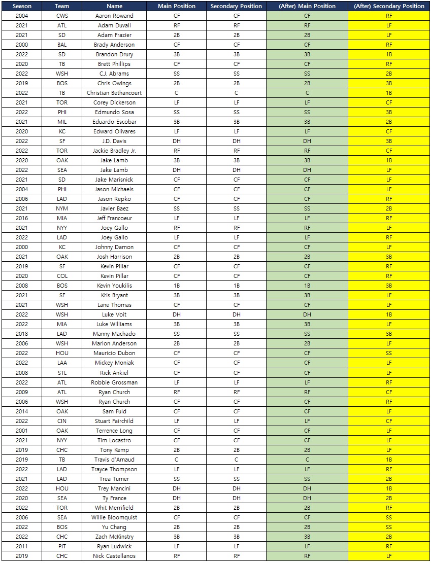 - Se cambiarán las posiciones de los siguientes jugadores.