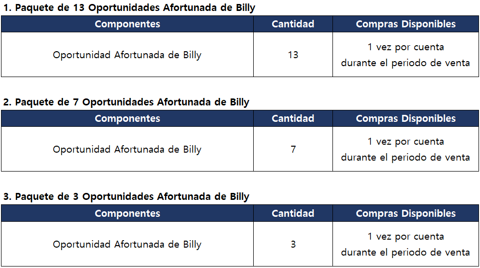 [Aviso] Aviso de Venta del Paquete de Oportunidad Afortunada de Billy
