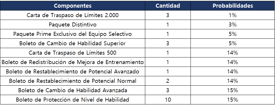 - Puedes obtener 1 artículo de la lista con una probabilidad fija cuando se abre la Oportunidad Afortunada de Billy.