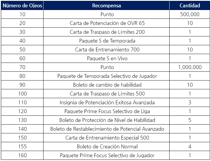 - El jugador obtenido del Ojeo Pick Up de Habilidad tendrá la categoría Oro y Habilidad de nivel S garantizadas para la primera ranura de habilidad.