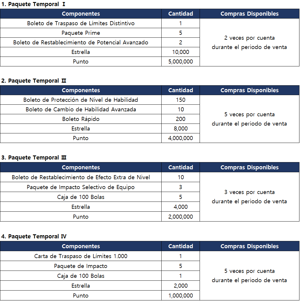 - Puedes obtener las siguientes recompensas según el número acumulado de compras del Paquete Temporal.