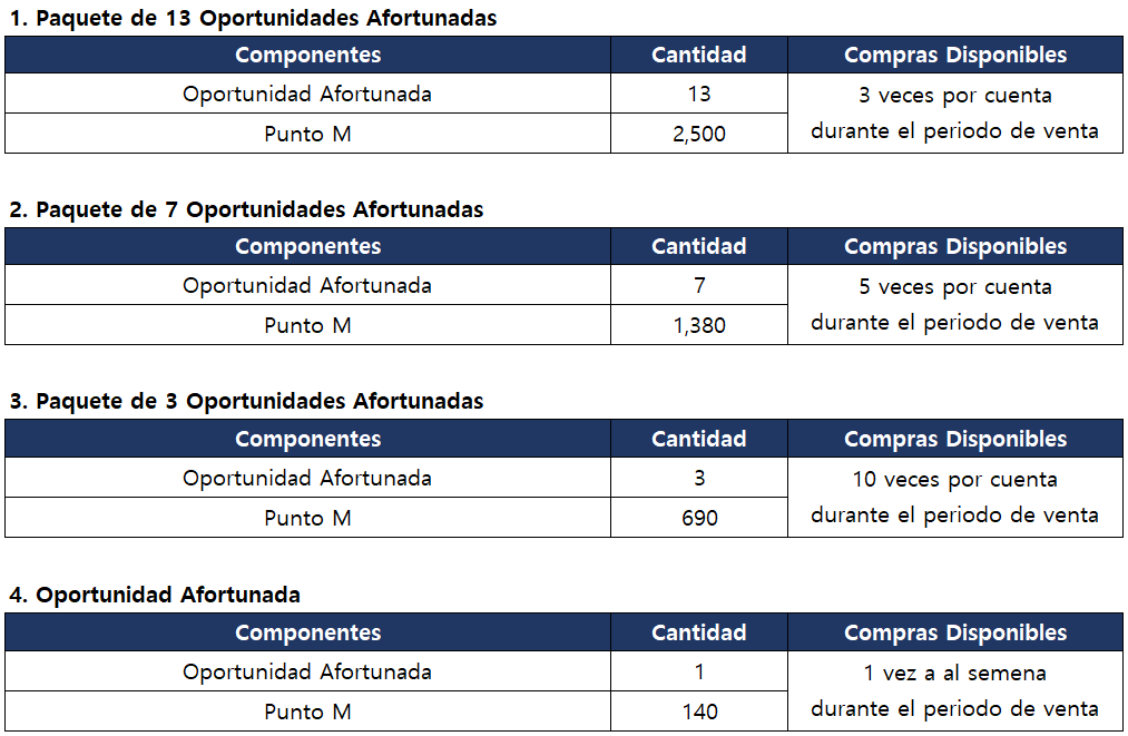 [Aviso] Aviso de Venta del Paquete de Oportunidad Afortunada