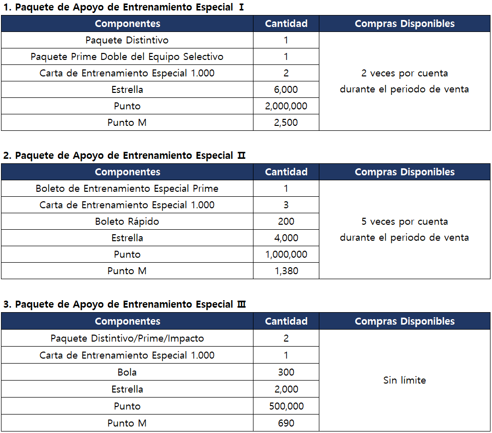 [Aviso] Aviso de Venta del Paquete de Apoyo de Entrenamiento Especial