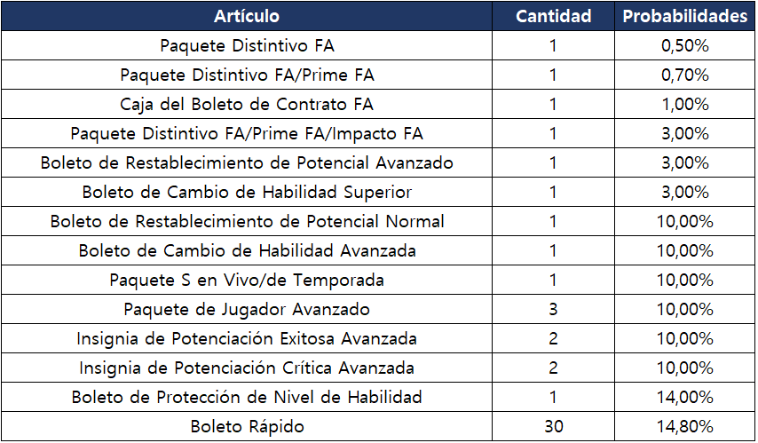 - Puedes obtener uno de los artículos de componentes con una cierta probabilidad.