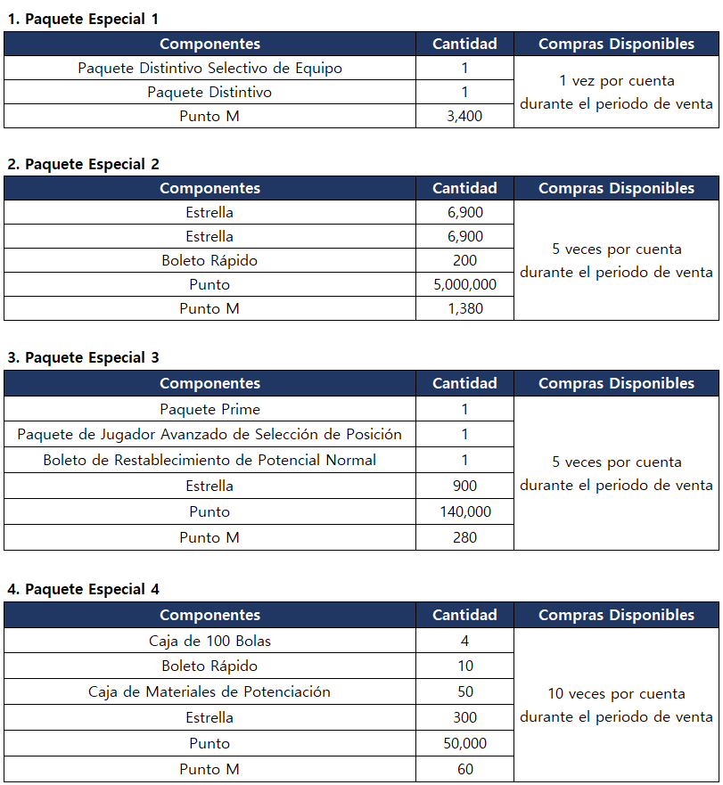 - Por favor, revise el aviso a continuación con respecto a la cantidad de Puntos M en el Paquete 1.